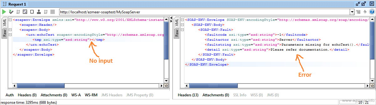 First try with an input and then without. You should see soap_fault is generated.